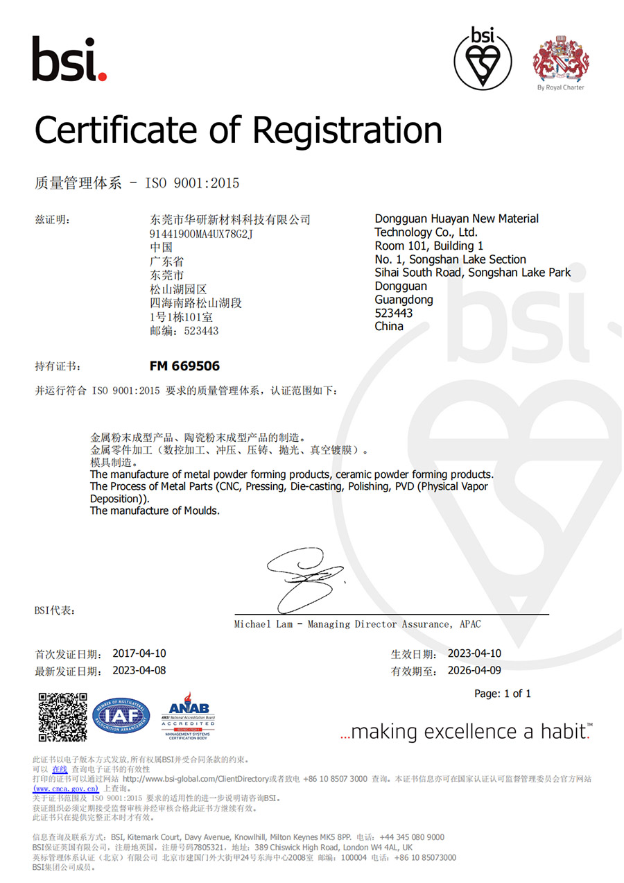 公司拥有多元化的核心工艺,涵盖新材料研发、精密模具、MIM(金属注射成型)、冲压、压铸、CNC(数控加工)、车铣复合、3D打印等先进制造工艺,并拥有抛光、喷砂、PVD(物理气相沉积)、钎焊、激光焊接等全面的表面处理能力,以成熟完整的工艺体系,为客户提供从一体化设计、新材料和新产品研发到精密零件制造、成套组装和测试的全流程服务,为各行业产品应用提供坚实的技术与制造支撑。